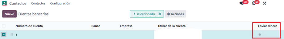 Luego ingresamos al modulo de contactos – Configuración – Cuentas bancarias