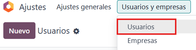 1 ir al modulo de ajustes - usuarios y compañía - Usuarios