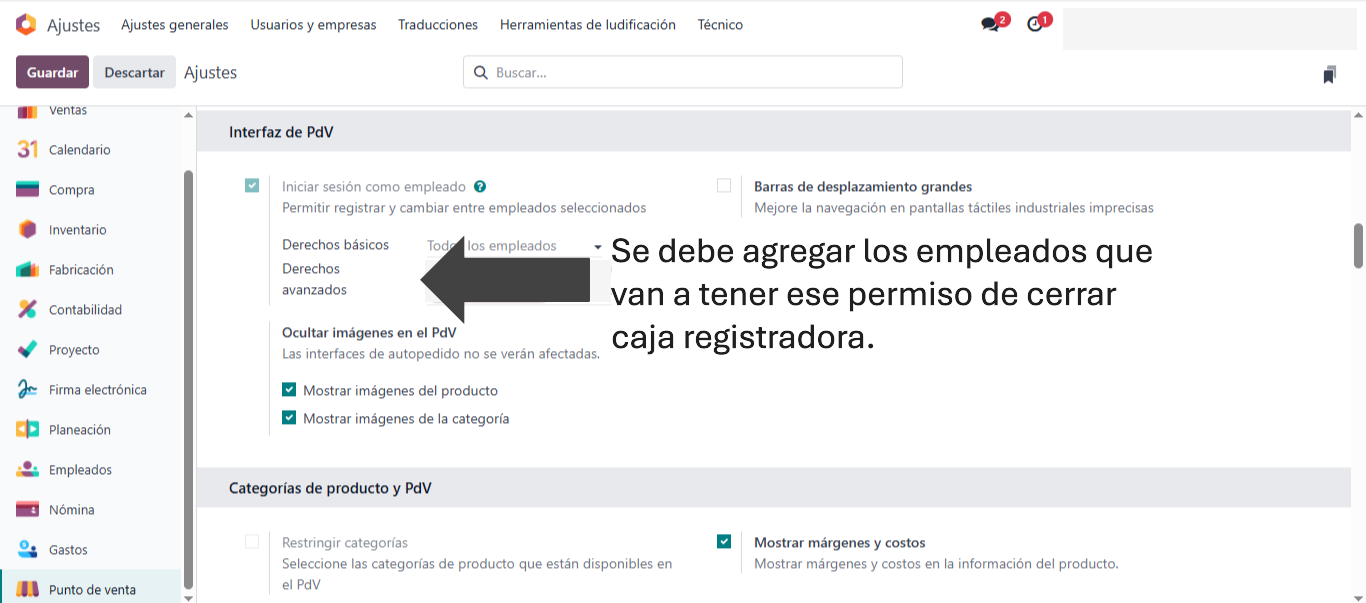 Paso 3: Asignar los empleados que van a tener el permiso para cerrar punto de venta.