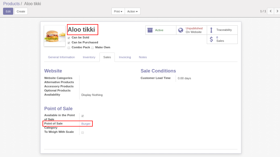- Y asigne su categorÃa de POS como hamburguesa como se muestra a continuación en las imágenes.