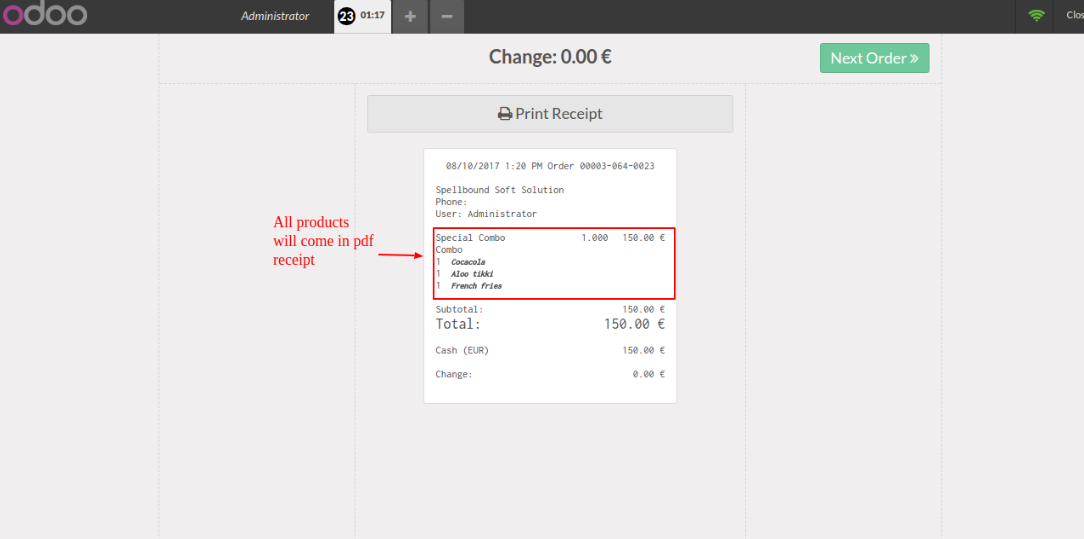 - Ahora puede ver el recibo y también todos los productos que puede seleccionar en una comida combinada.