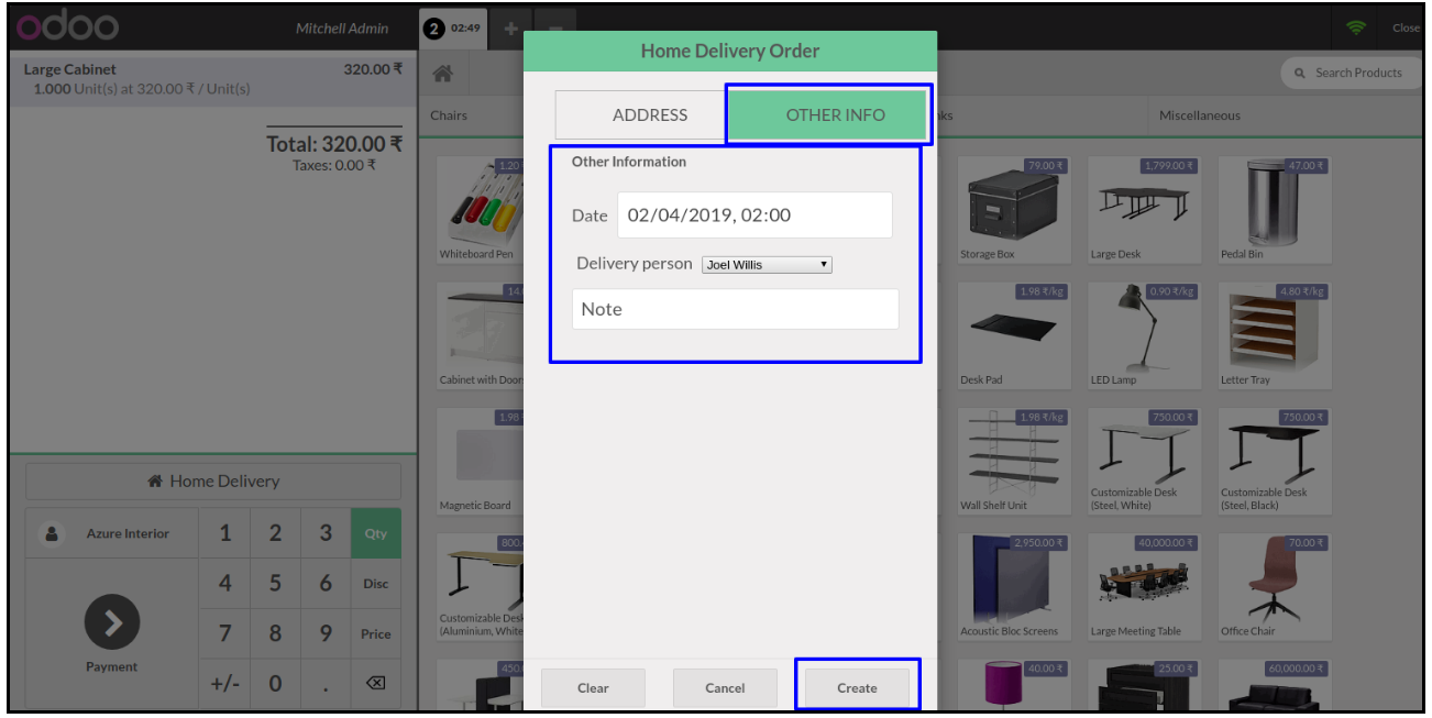 - Haga clic en el bot贸n Crear para crear la entrega a domicilio.