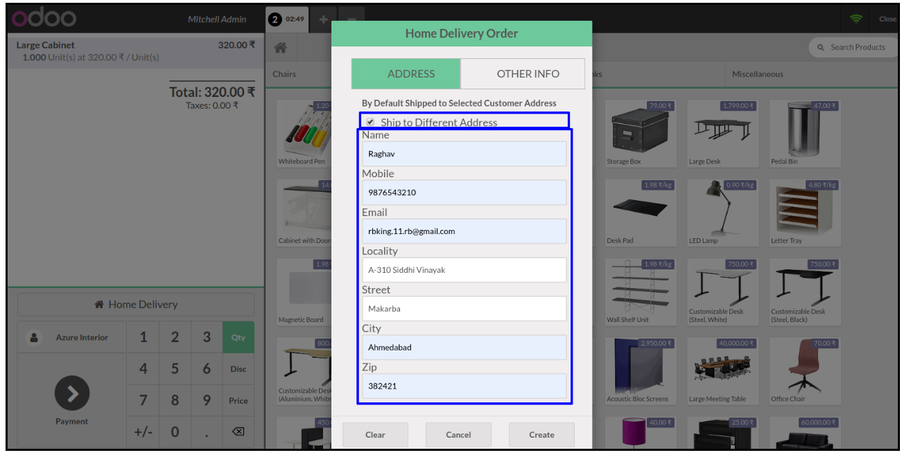 Cambiar direcci贸nPuede cambiar la direcci贸n del cliente mientras crea el pedido. |