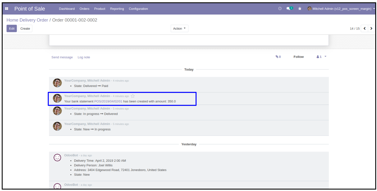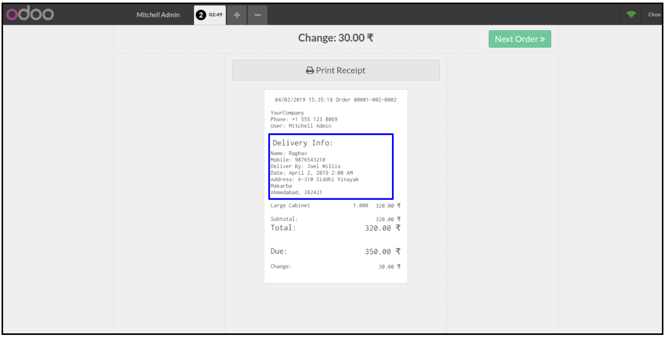Esta aplicaci贸n est谩 dise帽ada para permitir la opci贸n de entrega a domicilio para pedidos de punto de venta en odoo. Con este m贸dulo, puede hacer que el cliente reciba los productos que desea en su puerta. Tambi茅n puede realizar un seguimiento del estado de ese pedido. Tambi茅n le permite saber hasta qu茅 hora el cliente debe recibir los productos en su puerta. Tambi茅n se puede agregar cualquier nota especial al crear el Pedido.