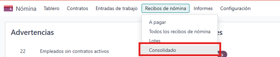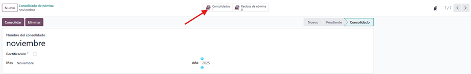 Como parte de esta funcionalidad, sobre el empleado o el propio registro relacionado se crea un botón inteligente denominado “Consolidado”, desde el cual el usuario puede acceder directamente al recibo completo generado.