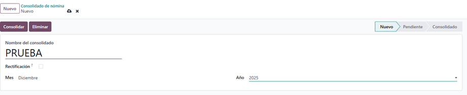 Con el botón nuevo podemos crear un consolidado, colocando