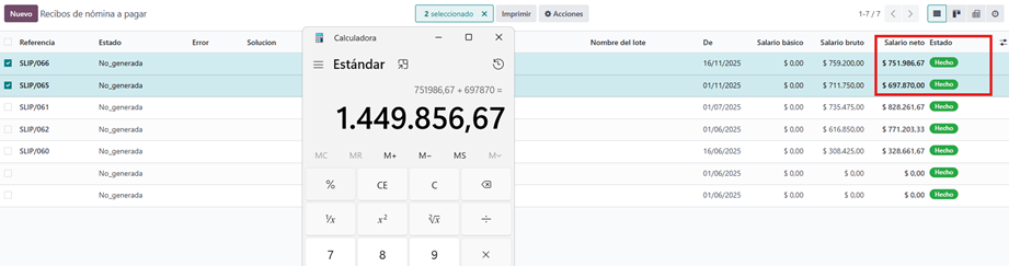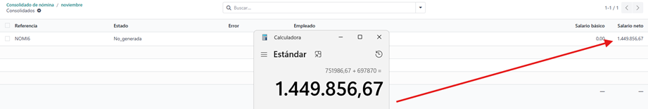 Verificamos que la suma de las dos nominas nos da el total del consolidado
