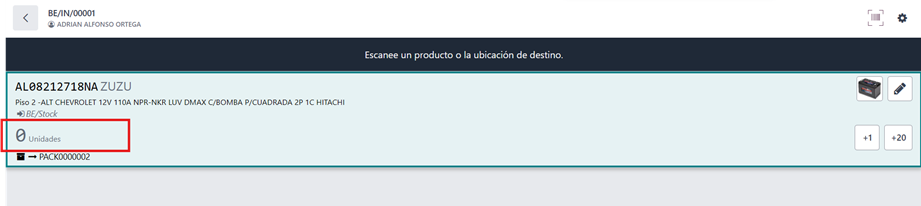 La cantidad no se muestra en la aplicación de código de barras para la operación seleccionada. - Checkbox desactivado: