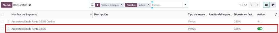 En estas opciones tenemos un check que nos permite ocultar en el pdf y no adjuntar en correo el impuesto seleccionado, en este caso la autorretención.